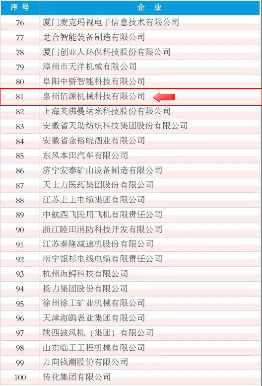 據(jù)中國工業(yè)報(bào)訊,泉州佰源機(jī)械科技有限公司入選2018年度中國工業(yè)影響力企業(yè)百強(qiáng)榜單。